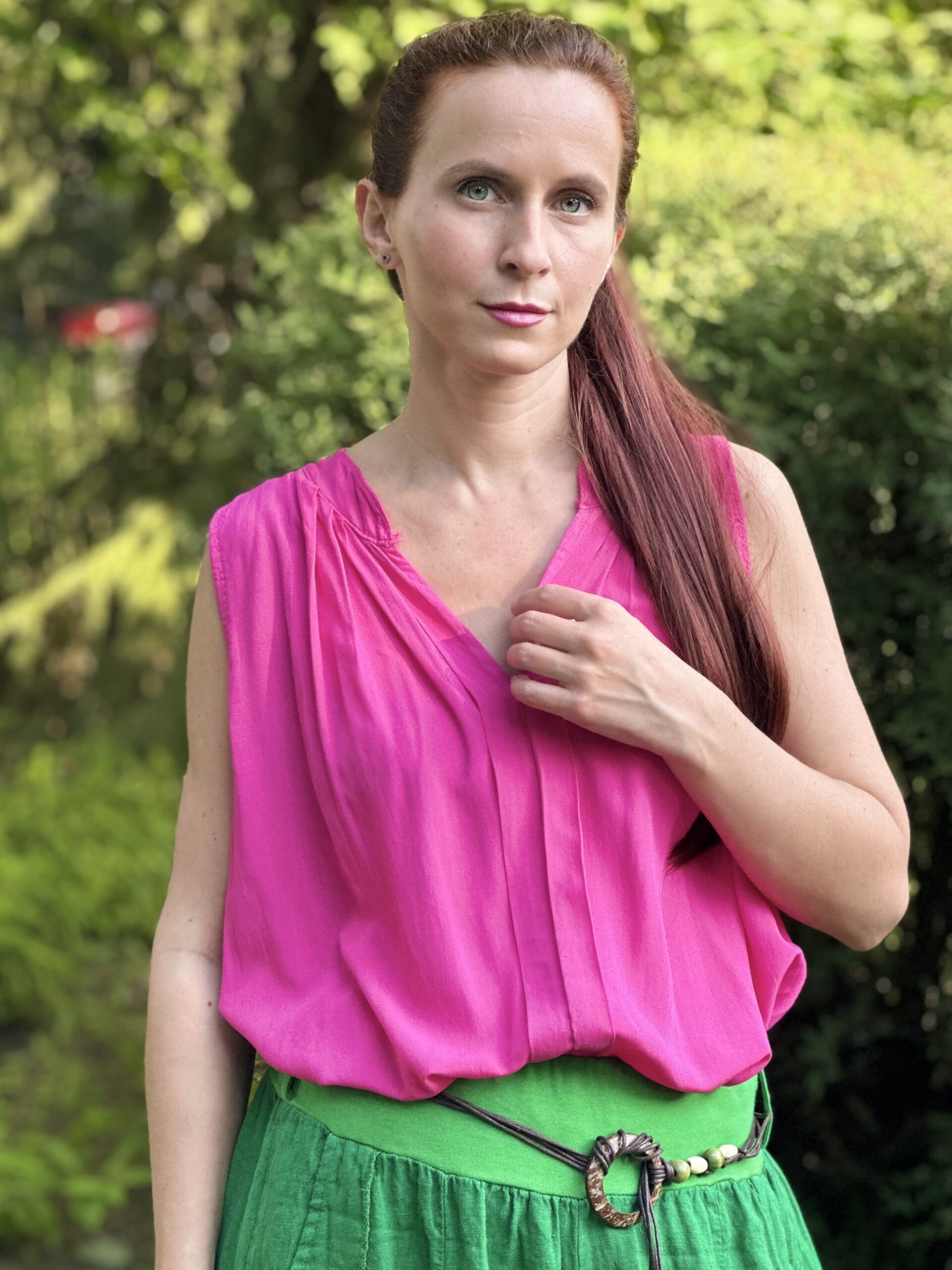 Komuś marzy się przyjemny topik? Bluzka Czas na lato sprawdzi się niemal do wszystkiego. Możesz ją bluzować lub nosić na wierzchu. Nada się pod marynarkę, do luźnych lnianych spodni lub do eleganckich spódnic. Bluzka zapewnia komfort Twojej skórze, bo pozwala jej swobodnie oddychać, dzięki temu, że wykonana jest z cienkiej tkaniny. Model ten dostępny jest w kilku wariantach kolorystycznych.