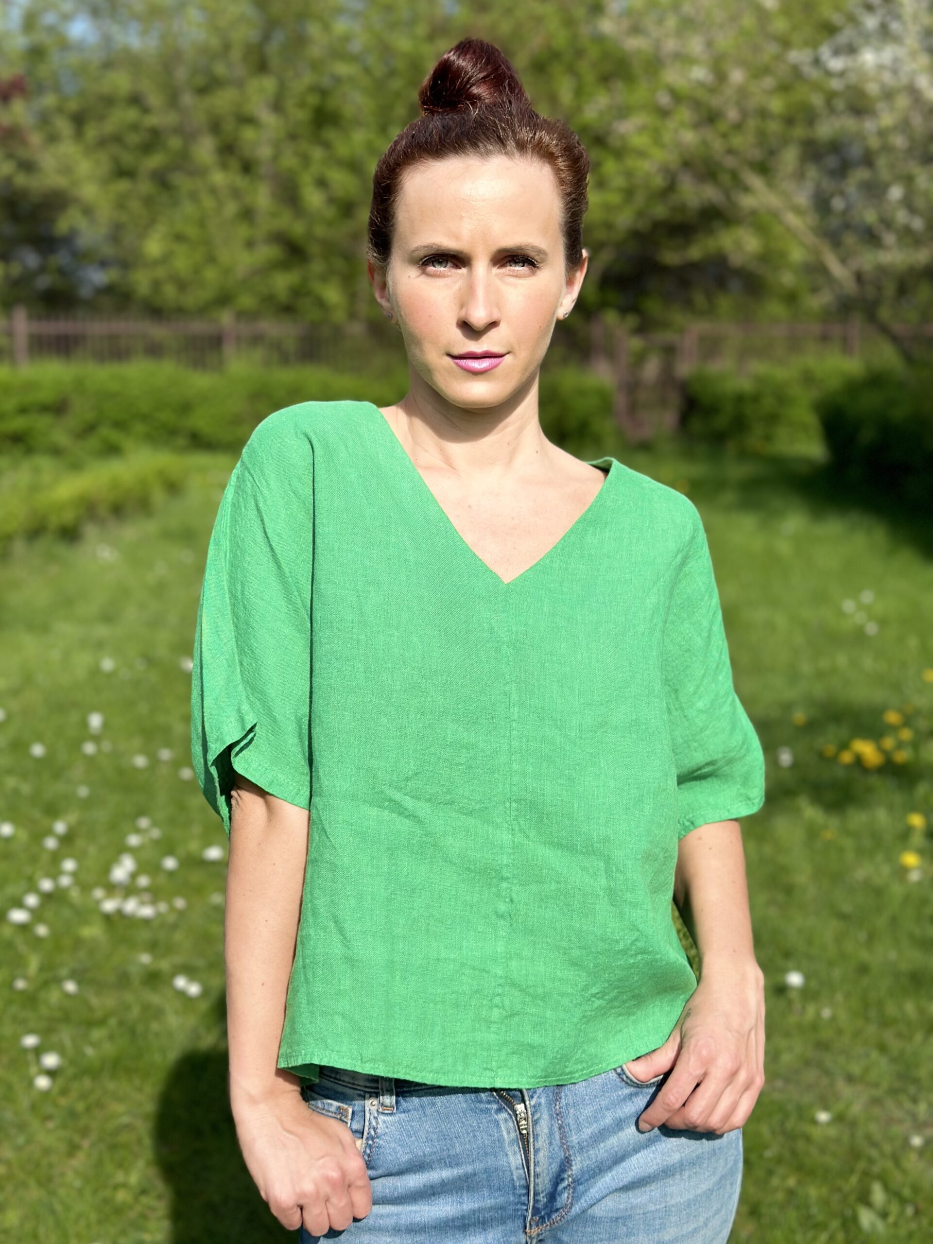 Bardzo wygodna bluzka z wycięciem pod szyją, pasująca dosłownie do wszystkiego. Założysz ją do jeansów, spódnic, czy szortów. Dostępna w różnych kolorach 🙂 Rozmiar one size.