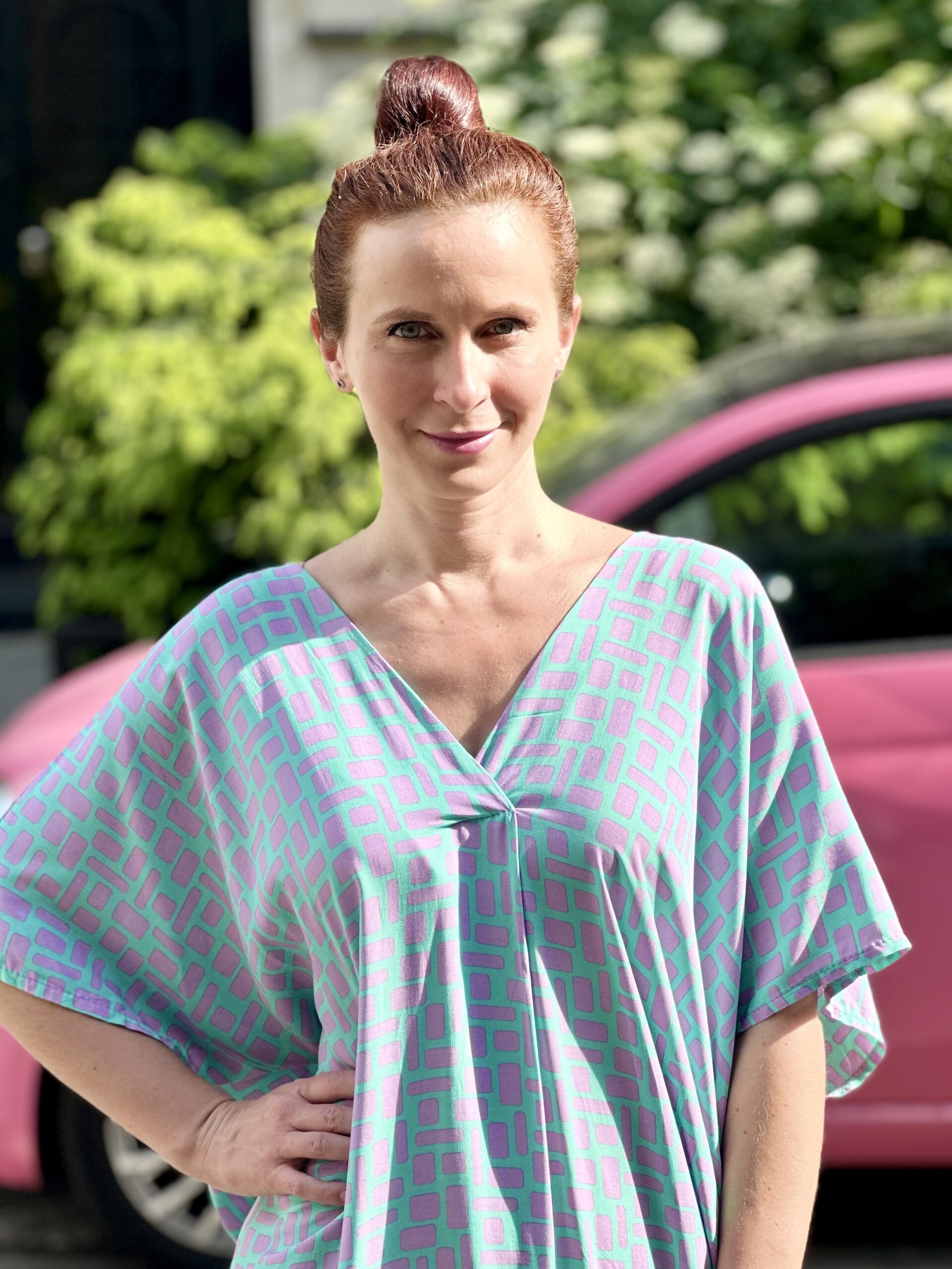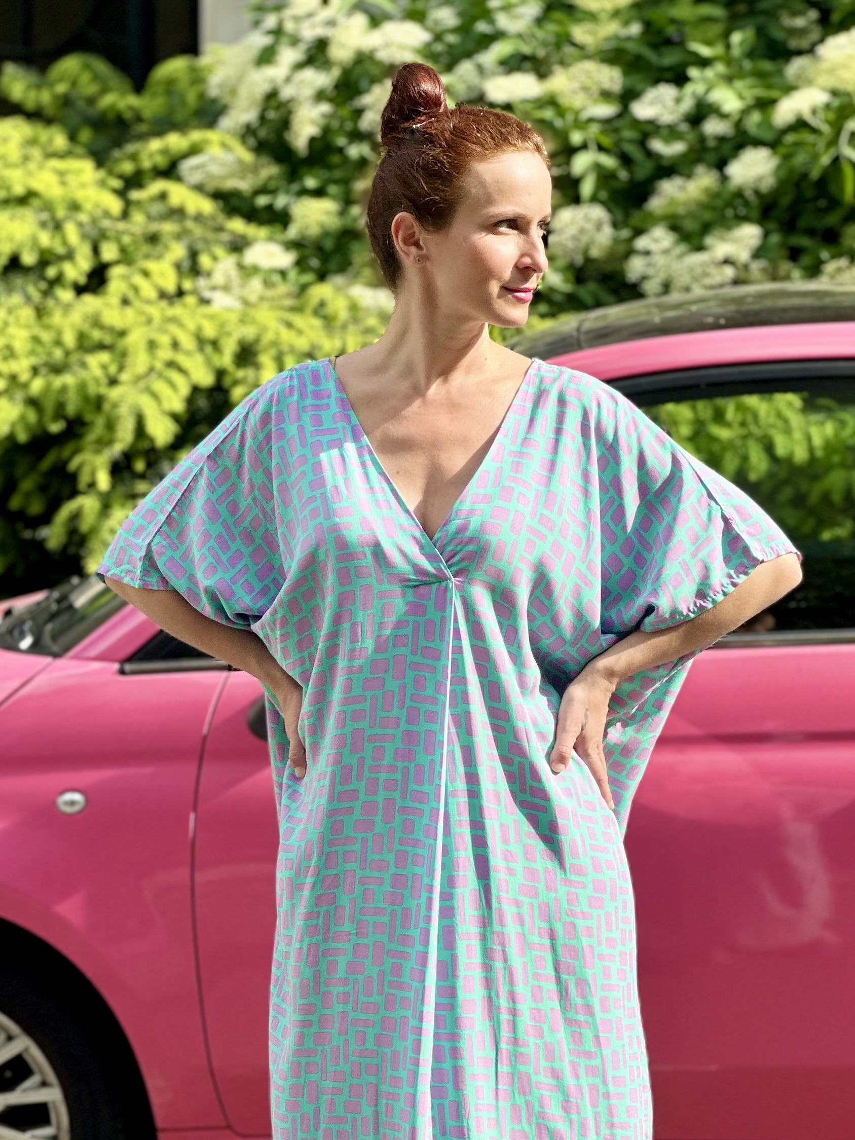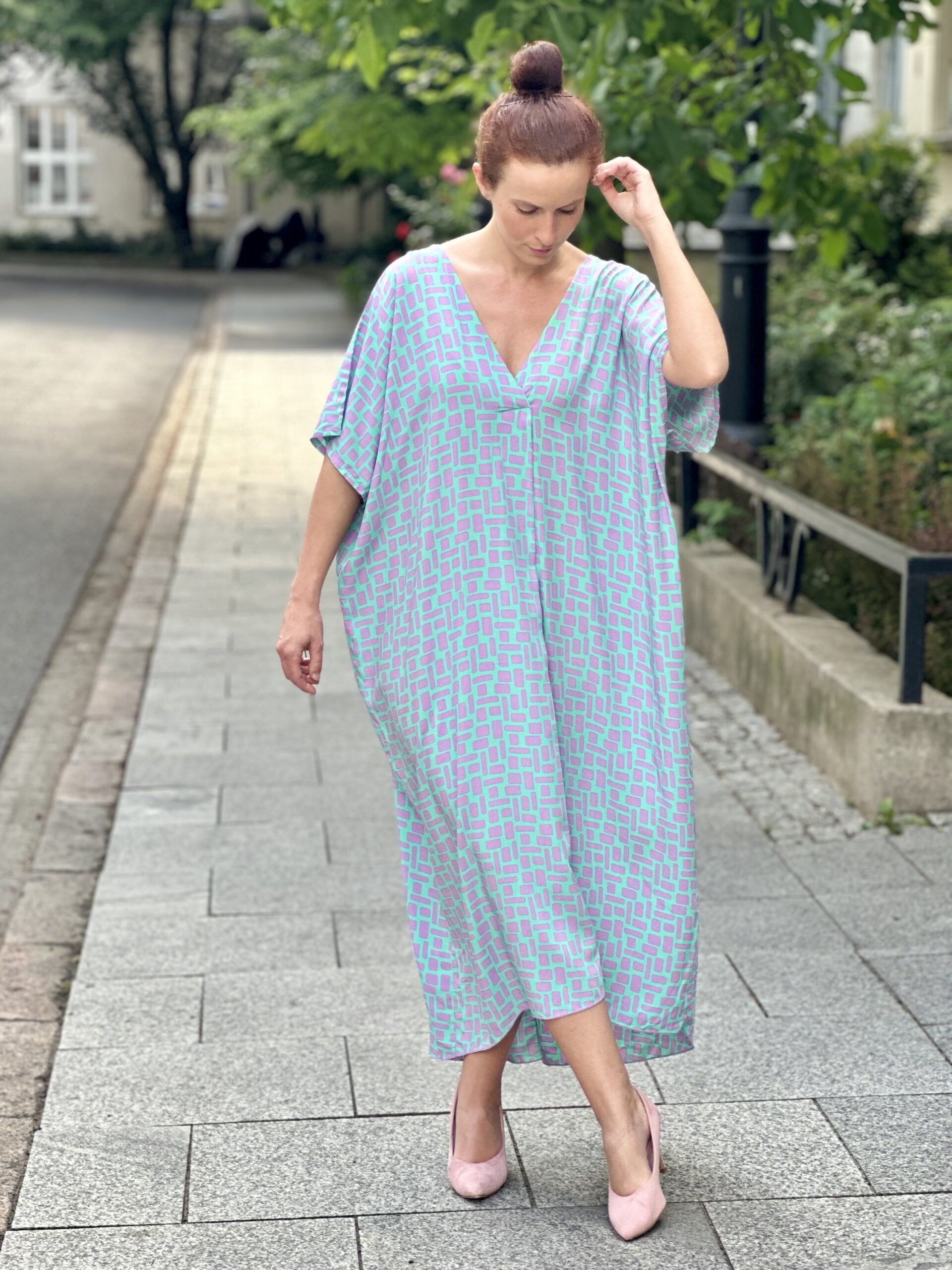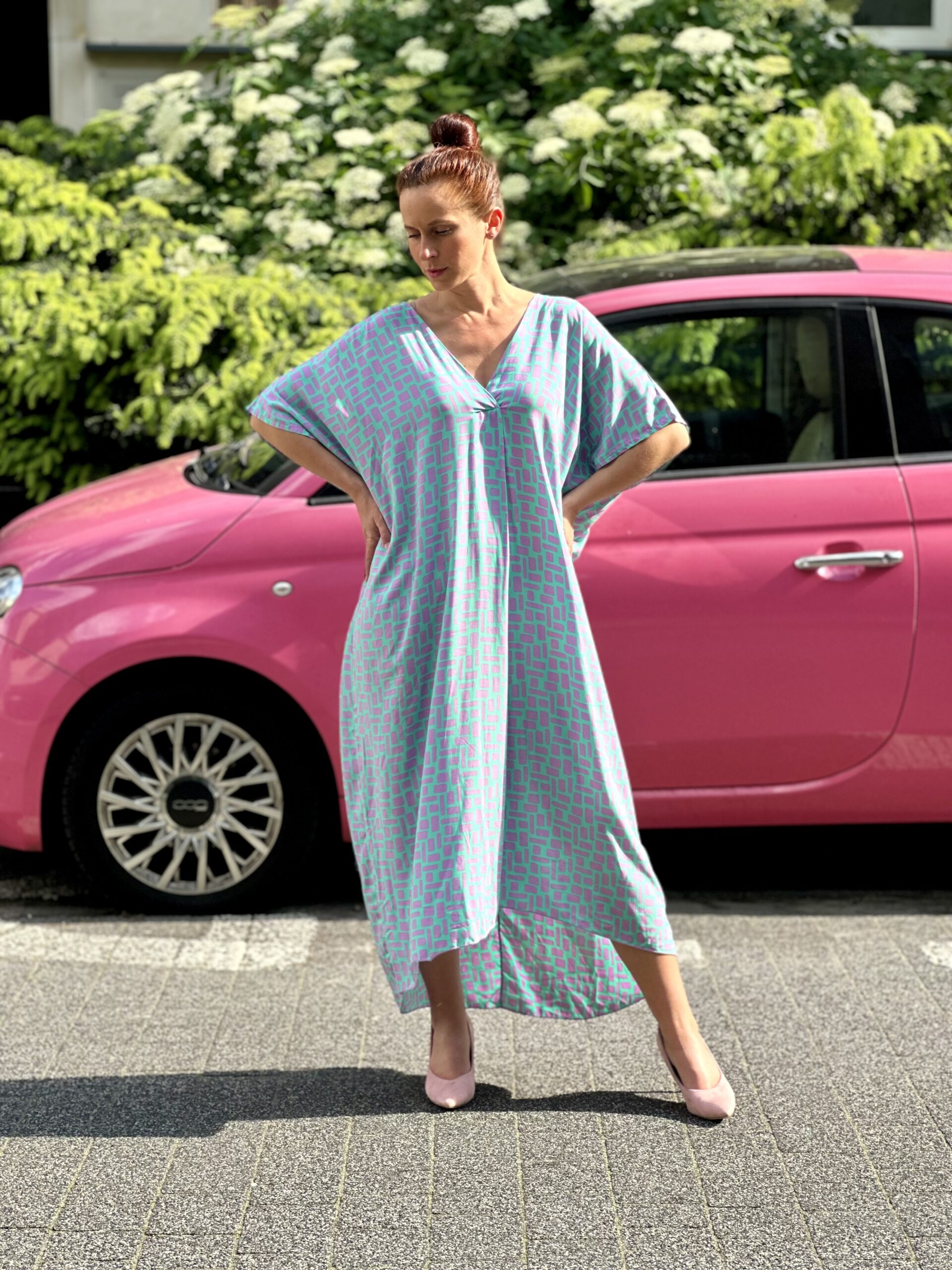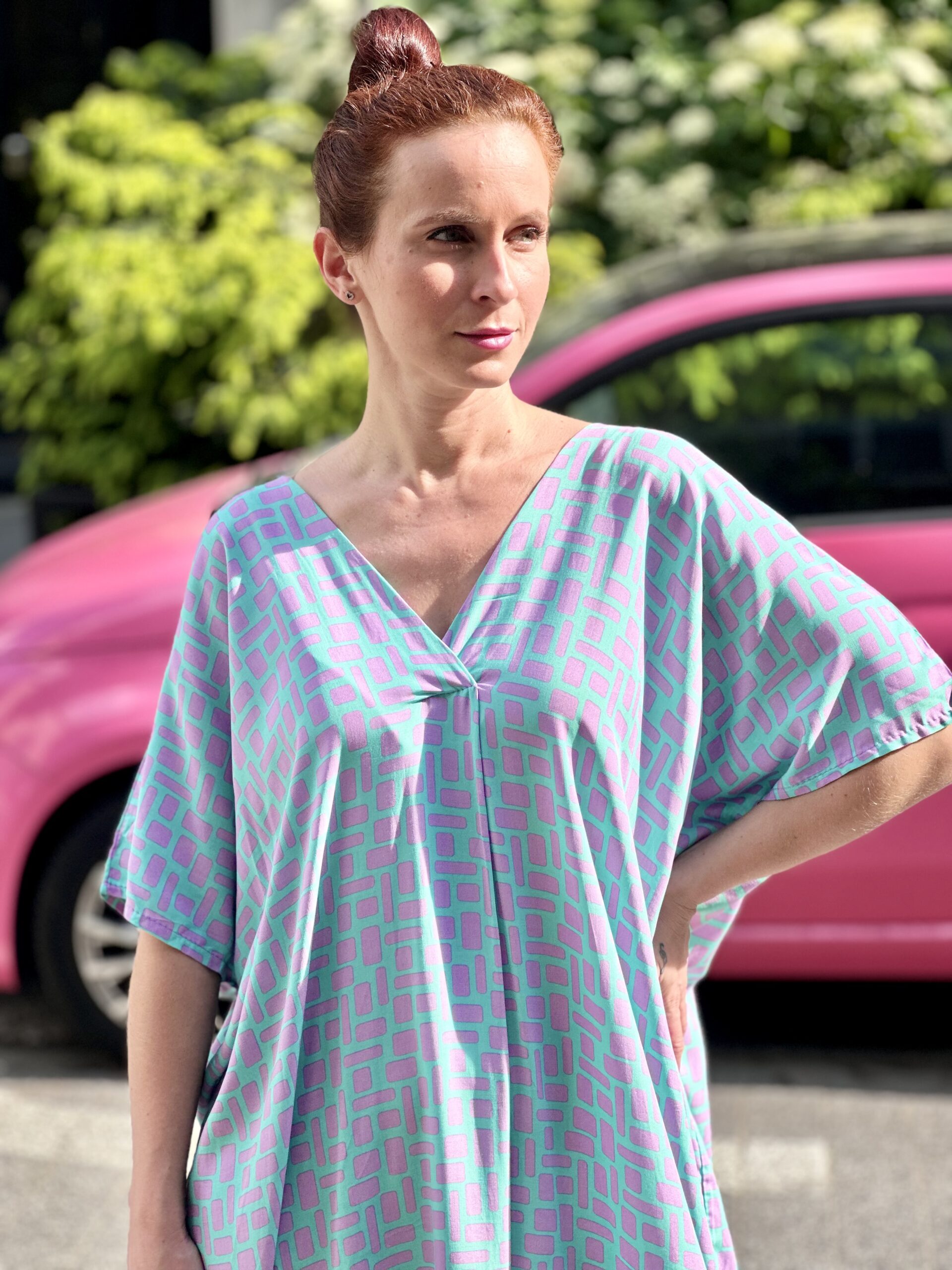 Bardzo luźna leciutka sukienka, w sam raz na letnie dni. Posiada obustronne wcięcie na dekolcie i z tyłu. Można nosić ją z paskiem lub bez. Przewiewna i niezwykle wygodna. Na pewno się z nią polubisz 🙂